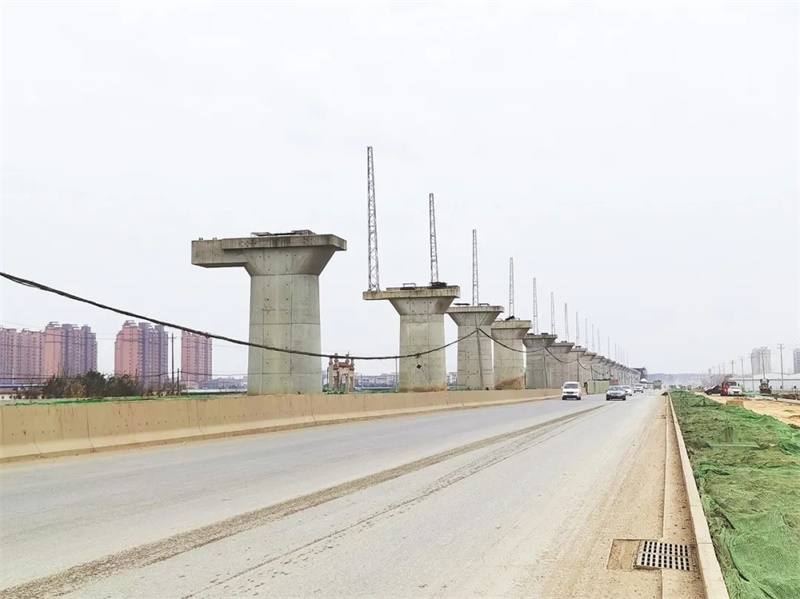 50多公里的江北鐵路幾乎全由高架組成,不影響公路交通,目前已完成了70%的橋梁鋪設(shè)。