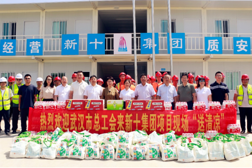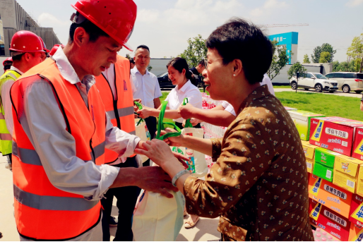 在供應(yīng)鏈中心項(xiàng)目建設(shè)現(xiàn)場,郭琳一行詳細(xì)了解了一線建設(shè)者的工作生活、防暑降溫措施落實(shí)等情況,并向冒著高溫堅(jiān)守一線的建設(shè)者們送上礦泉水、毛巾、水杯、降溫藥品等慰問物資。
